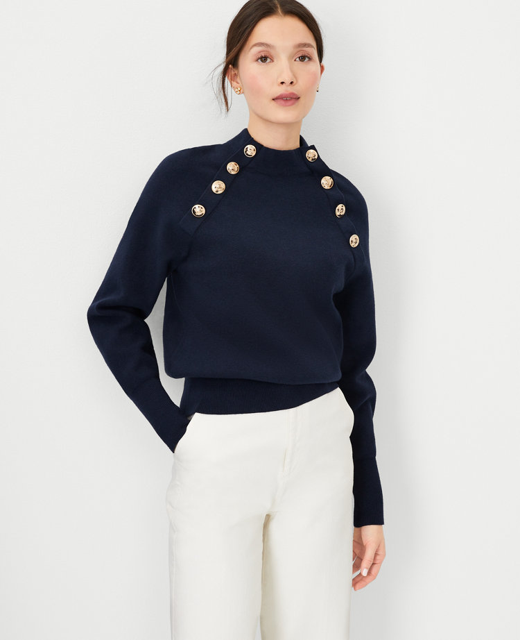 Raglan Button Mock Neck Sweater Very well made.