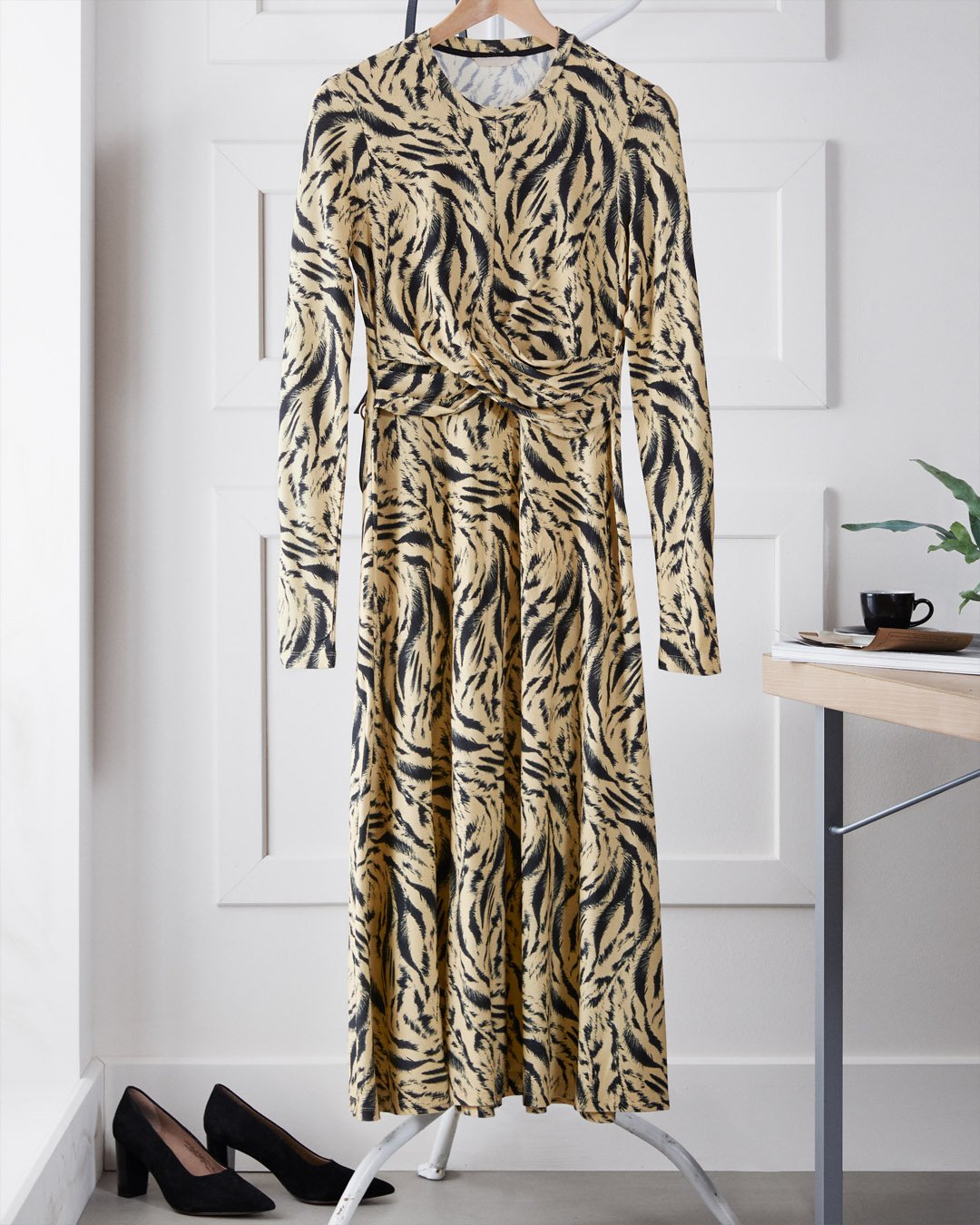 H M Wrap dress Dark beige Tiger striped Ladies H M Very well made.