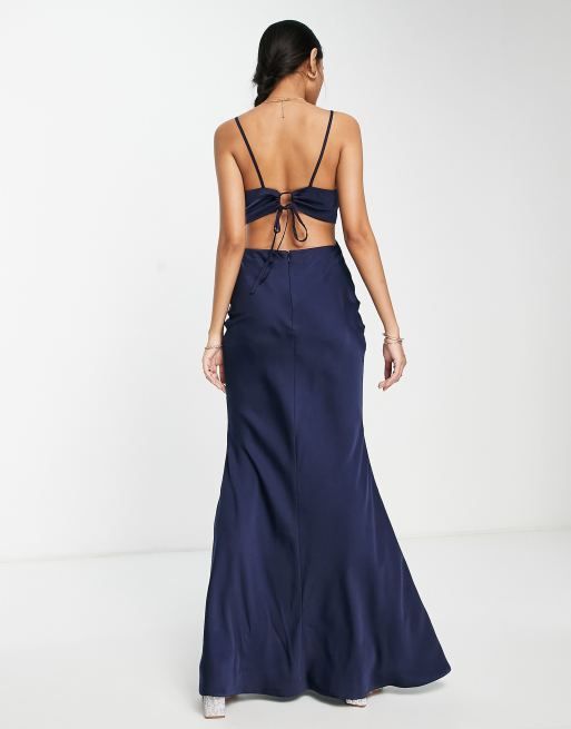 ASOS DESIGN satin maxi dress with cut out and tie back detail Very well made.