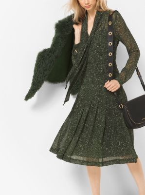 Tweed Print Chiffon Tie Neck Dress Michael Kors Canada Very well made.