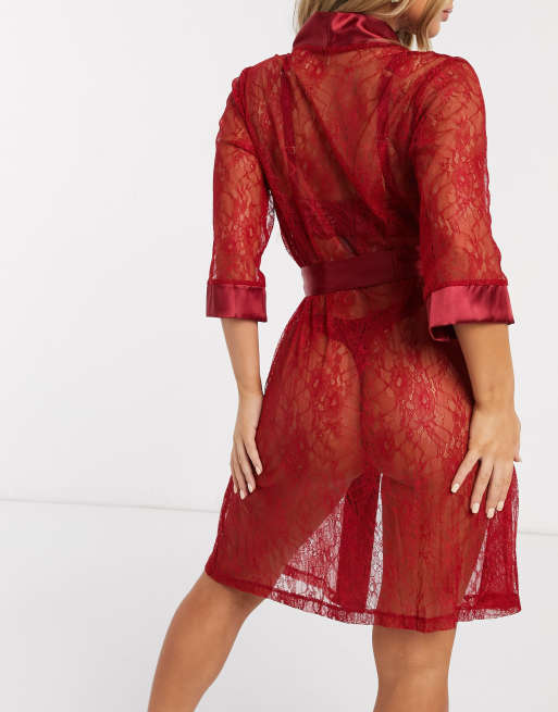 Love Other Things Peignoir transparent en dentelle Rouge Very well made.