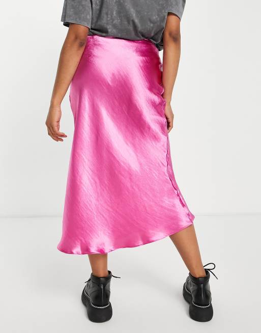 ASOS DESIGN satin bias slip midi skirt in rose pink Very well made.