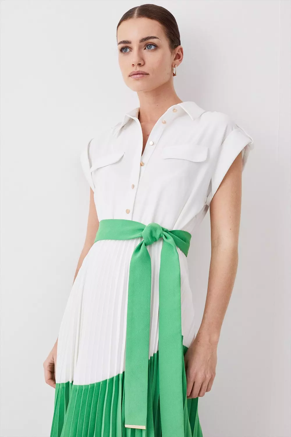 Club Monaco Shoanah Pleated Colorblock Shirtdress Luxed Very well made.